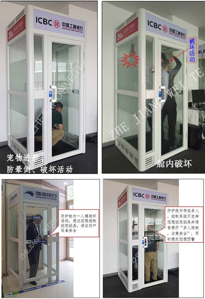 防護艙內發生破壞、打斗等異常情況時,防護艙內僅一人的,遠程后臺強制鎖死艙門鎖具,艙內人員無法開啟艙門鎖具;防護艙內為二人(含)以上的,遠程后臺無法強制自動鎖死鎖具,原艙門鎖具保持正常鎖閉功能狀態,如多人團伙在艙內破壞活動,根據遠程后臺人員分析具體情況可以再次強制鎖死艙門鎖具。(艙門鎖具啟閉可根據后臺人員管控操作)